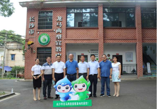 調(diào)研組實地調(diào)研長沙市龍馬兩型社區(qū)并合影留念