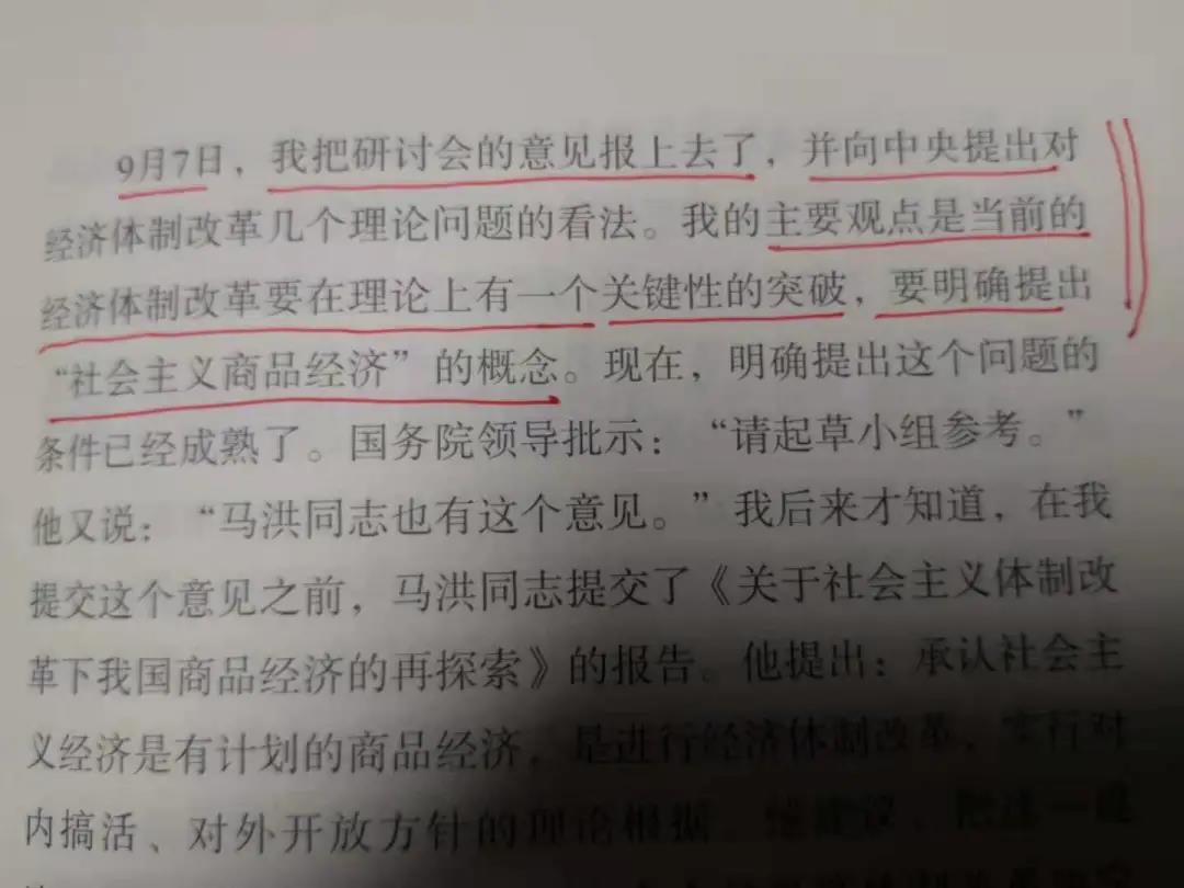 有意思的是,在十二屆三中全會(huì)召開之前,8月底,您在北京西苑旅社(現(xiàn)西苑飯店)召開研討會(huì),并在9月7日將研討意見上報(bào),建議中央“要明確提出‘社會(huì)主義商品經(jīng)濟(jì)’的概念”(后來見到有關(guān)領(lǐng)導(dǎo)這段批示:“請(qǐng)起草小組閱,馬洪同志也有這個(gè)意見。”)對(duì)于中國(guó)經(jīng)濟(jì)體制改革的目標(biāo)和理念,幾家研究報(bào)告(包括體改委、社科院以及南開報(bào)告等),可謂“不謀而合”。此時(shí),雖然與您未曾謀面,但有一種“神交”的感覺。
