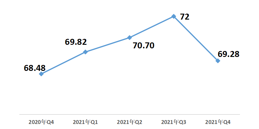 1月29日,中國經(jīng)濟(jì)體制改革研究會在京發(fā)布《2021年第四季度改革熱度第三方評估報告》。報告顯示,2021年第四季度改革熱度指數(shù)為69.28,同比增長0.8;與上一季度相比,減少2.72,降幅3.78%。