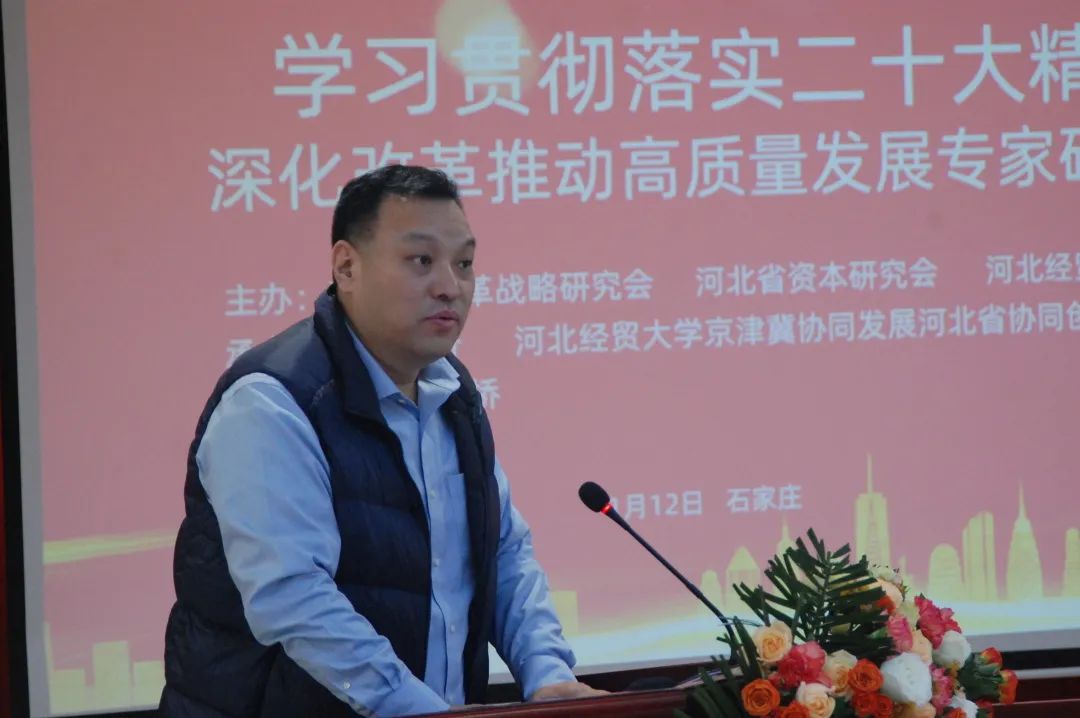 為深入學(xué)習(xí)貫徹黨的二十大精神,深化改革開放,加快構(gòu)建新發(fā)展格局,推動(dòng)我省經(jīng)濟(jì)高質(zhì)量發(fā)展,1月12日,由河北省改革戰(zhàn)略研究會(huì)、河北省資本研究會(huì)、河北經(jīng)貿(mào)大學(xué)共同主辦,邯鄲銀行、河北經(jīng)貿(mào)大學(xué)京津冀協(xié)同發(fā)展河北省協(xié)同創(chuàng)新中心承辦,經(jīng)貿(mào)橋協(xié)助承辦的“學(xué)習(xí)貫徹落實(shí)二十大精神,深化改革推動(dòng)高質(zhì)量發(fā)展專家研討會(huì)”在石家莊召開。
