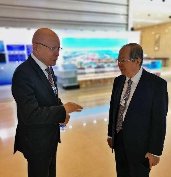 彭森會(huì)長(zhǎng)與世界經(jīng)濟(jì)論壇大中華區(qū)主席陳黎明親切交談
