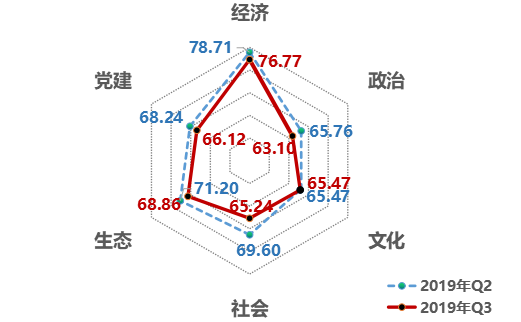 1、從領(lǐng)域來看,文化領(lǐng)域改革熱度值保持穩(wěn)定,并首次超過社會領(lǐng)域。第三季度,經(jīng)濟(jì)領(lǐng)域得分76.77,生態(tài)領(lǐng)域得分68.86,黨建領(lǐng)域得分66.12,文化領(lǐng)域得分65.47,社會領(lǐng)域得分65.24,政治領(lǐng)域得分63.10。